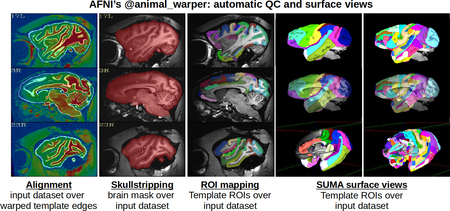 Details of QC outputs showing alignment, skullstripping, ROI mapping and surface viewing of ROIs |